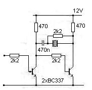 Ez a kimenőjel neked állandó jelleggel kell a kimeneten,vagy valami esetleg vezérelné a kemenő jelet? Mert az is könnyen megoldható. Régebben gyártottam 22kHz-es fejátkapcsolókat,bele kellett nyúlni a műholdvevő processzor körüli részébe,hogy a távszabályzón adott gomb megnyomásakor megjelenlen a kimeneten a jel (ott a tápfeszre még rá is kellett ültetni). Azt a kapcsolást egy sima CMOS ic-vel csináltam és elég stabil volt a fej számára. Ha még komolyabb végfok kell,akkor 4013-al szét kell választani a jel fázisát és utána minkét fázist komplemmenterrel hajtani meg.Ha kell,lerajzolom majd. (amúgy a mellékelt kapcsolás elég nagyot erősít,próbáld ki először)