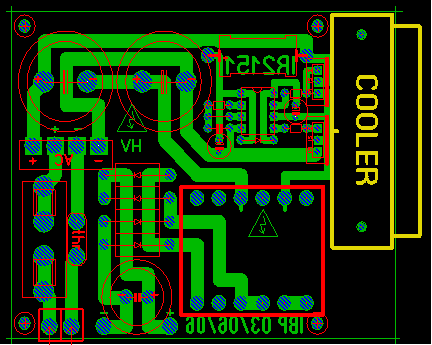 Ill. még egy jótanács: az IR2151 Rt és Ct lábain levő ellenállás és kondi ne legyen a rajzon a két 200V-os kondi, a két FET, és a trafó primer lábai által körbezárt - piros/zöld/kék vonalakkal jelölt - körön belül (ez azt jelenti, hogy az IC sem lehet bent), sőt, ez a kör minél kisebb legyen fizikailag. A hozzászólás módosítva: Márc 26, 2013