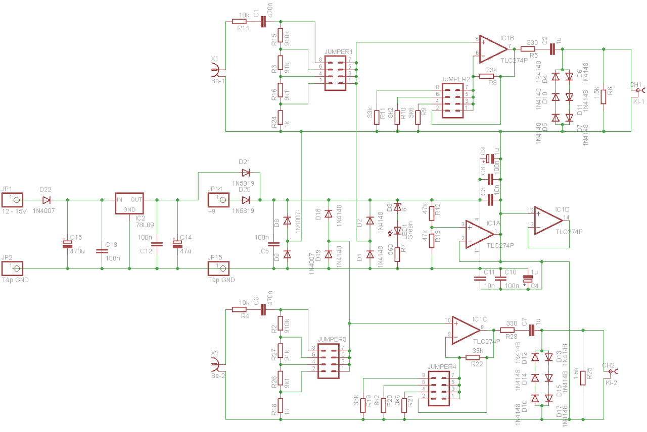 Elkészítettem a 2 csatornás változatot. Mivel sikerült 470 nF/250 V kondikat szereznem, ezért meghagytam a /1000-es osztást. Kérdés, hogy jó lesz-e ez így? Ránéznétek?