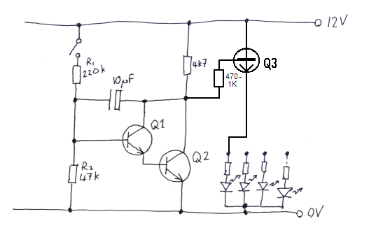 Hogyan lehetne meg oldani azt , hogy én egy közöskatodos RGB ledet tudjak ugy villogatni hogy annak fény ereje erösödjön és halványodjon? Az alábbi rajz jol müködk azt csinálja amire szükségem lenne csak nem tudom hogyan lehetne megoldani azt hogy a led anódjára mennyen az erösödö feszültség ?