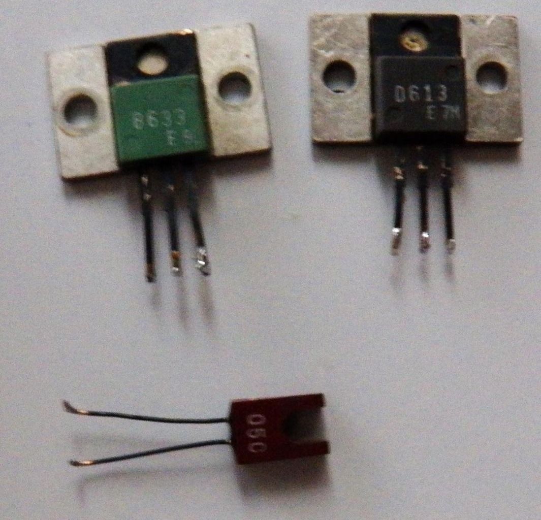 Kaptam javításra egy Evans Creative Sound Musical Amplifer Model EG-401 gitár erősítőt. Ami biztos tönkrement benne, az egy D613 és B633 tranzisztor páros, közöttük egy ugyanarra a hűtőbordára szerelt diódával. A meghajtó tranzisztorok D438 és B560. A D613 és a B633 úgy olvastam helyettesíthető BD233C és BD234C párossal. A meghajtó tranzisztorokra viszont nem találtam helyettesítő típust, meg a diódára is csak annyi van írva hogy 05C. Ez a dióda a két meghajtó tranzisztor bázisa között van egy ellenállással sorosan. Szerintetek mivel helyettesítsem? Meg azt nem tudom, hogy a két vég tranzisztor valahogy be van pattintva egy aluminium házba és az van felcsavarozva. Ez valahogy kiszedhető? Néhány képet is beteszek: