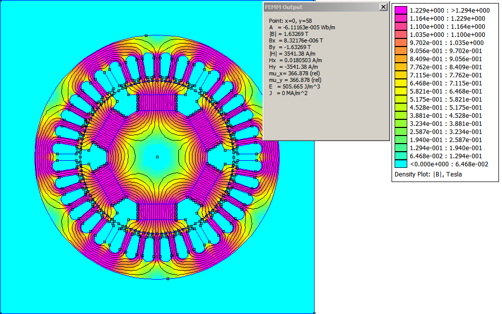 Megbeszéltük hogy a gépben, akkor van megfelelő felületű mágnes, amikor a koszorú ki van hajtva (ha a koszorú ki van hajtva, akkor a gép is biztosan spiccen van), azaz 1.2T körüli a koszorú indukció (terheletlenül), és akkor elég a mágnes vastagság, amikor az áram visszahatása még nem jelentős. Koszorú 11mm, akkor 25mm nél szélesebb mágnest nem érdemes betenni (mélységi mérete a vasnak meg a mágnesenek azonos). Fűrészes horonybe/szétvágás minimum 3mm széles kellene legyen Helyesen gondolod, ha elmarad minden második mágnes, akkor nagyjából ugyanaz az üzesjárási helyzet, de persze csökken a fluxus (olyan mintha minden mágnes megmaradna csak fele vastagsággal). A hozzászólás módosítva: Márc 31, 2013