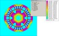 Korlátozott képességeim miatt csak feketében, itt a vonalsűrűség ábrázolja a fluxussűrűséget. 2 mm-es mágnes, 1 mm légrés. Ennek ellenére minimális a szóródás. Gulyinál a zsúfolt rajzon nem is lehet többet ábrázolni. Elég kicsi az átfogás a legnagyobb és legkisebb fluxus között. Ahol nálam vonalakat látni, ott ~100-as az átfogás, de az üres felületen egerészve nagy távolságokban is mutatja (kérdés, milyen pontossággal) a fluxust.
