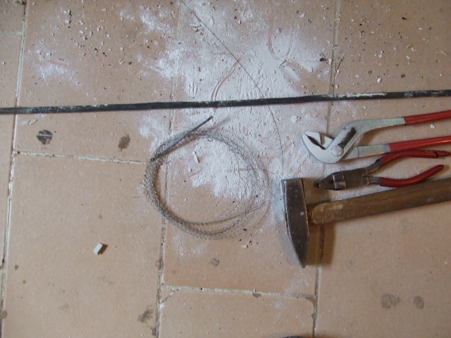 Amit benne találtam, az úgy néz ki, hogy tökéletesen megfelel a céljaimnak. A szétszedés egyszerű. a kiegyengetéssel kell kezdeni. ha már egyenes, akkor a külső csőböl mindkét végén körbe kell vágni egy 2-3cm-es darabot és lehúzni. Majd még egy 3cm hosszan mindkét végén erőteljesen körbe kalapálni, amíg a tömítő kerámia ki nem pereg. Ha kipergett, akkor fehér szinü por fog belőle jönni, szerintem valami kvarcporféleség. Innen már egyszerű, csak meg kell fogni fogóval a kiálló drótvéget és húzni. Szép 0.5mm-es fűtőszálat kapunk. Kicsit ugyan hullámos mert fel van tekerve, de egyik végét satuba fogva, fogóval a másik végén erőteljes húzással simára húzható. Az általam szétszedett betétben, 5,1m volt, a teljes hossz ellenállása 30,5Ω. Ebből 12V-on egy 78cm-es darab, 3A-rel, pontosan habvágáshoz megfelelően melegedett. Ha jól saccolom, 24V-on kb pont megkapom a nekem szükséges 1,5M-es darabot. Itt van szétbontva: