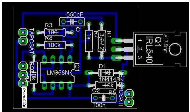 * Természetesen kimértem a fetet még a bontás után illetve az áramgenerátort is, mielőtt rákötöttem volna a diódát. Maga az smd panel csak 15*15 mm-es hogy esetleg beleférjen magába a modul házába, a poti helyére majd 2 db fix ellenállás kerül (100 mA fix dióda áramhoz) a hosszabb élettartam reményében. Sajnos az smd fetet elég körülményes hűteni, csak az alatta lévő 6*6 mm-es nyáklemez rézfólia hűti. Mondjuk késő este kézzel rajzoltam és már nem volt kedvem a túloldalra tenni (gyári LM358 + fetes áramgenerátorokon a 3.9 ohm + a fet a nyák túlsó felére kerül általában) Másik hogy nálam 5 V táp 200 mA áramnál már erősen melegszik + a kevés hűtés tehát inkább csinálok egy normál panelt rendes "nagy" fettel, bordával. * Köszi a segítséget, akkor sztem belevágok a Peltieres dologba, de majd csak gyári új erősebb diódával, mert a bontott dvd lézerekkel kapcs.ban elég vegyesek a tapasztalataim.