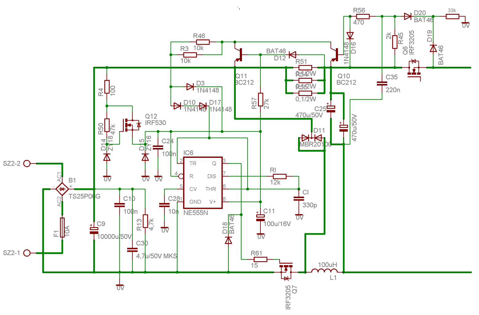 Természetesen ITT a jól ismert rajz. Az átalakítás menni fog egyedül is. Egy 6,2V-os zéner és egy 1K-s ellenállás G-S lábra, utána mehet a bipoláris tranzisztor helyére. Csupán abban nem vagyok még mindig garantálva, hogy az említett FET-tel működni fog a dolog...