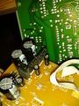 Nekem is elég gyanús, hogy a 10V is kevés neki. Az a két nagy elektrolitkondenzátor az IC-k mögött (illetve előtt, mert az arcuk néz a kondik felé) sorba van kötve, úgy értem, hogy egymás tetején állnak. Ezek bemeneti pufferek egy kettős táphoz, látszik a másik képen a bekötésükön.