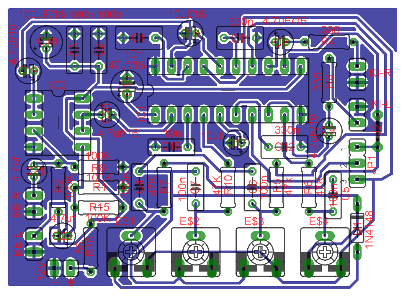 kis segítségre lenne szükségem mert nem boldogulok egy 1036 os IC vel felépített előerősítővel. Összeraktam egy hangszínszabályzó áramkört és nem igazán csinál semmit ha a bemenetre adok jelet a kimenetre meg teszek egy hangszorót azon se a hangszínen sem a hangerőn nem tapasztalok változást.Mellékelten küldöm a rajzokat esetleg áttudná nézni valaki h mit ronthattam el?