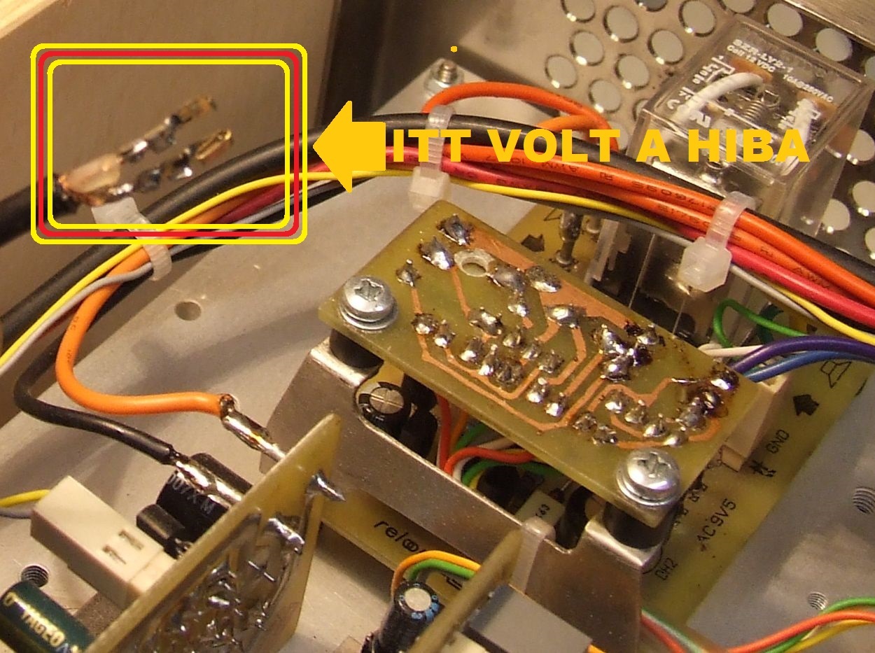 Általában nem használok "csúszó" csatlakozókat végfokozatokban, de most használtam, és ez okozta a hibát. Tételezzük fel, hogy ritka, csak egyedileg előforduló jelenségről van szó, de közrejátszhatott a viszonylag vastag és merev árnyékolt kábel is. Kicseréltem a csatlakozó belső csúszkáját, és most hibátlan.