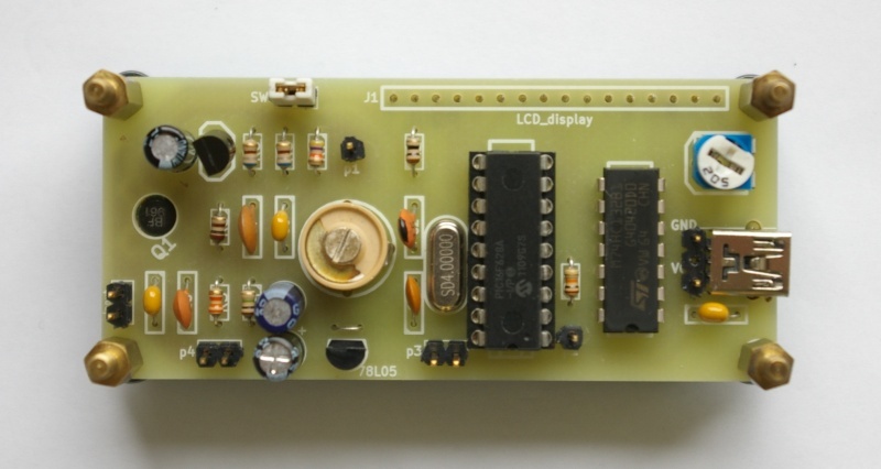 A NYÁK-hoz csak annyit, hogy balga módon hittem a google első találatában a BF240 bekötésével kapcsolatban, ezért a NYÁK-on EBC sorrend lett. Egy kicsit össze kell kócolni a lábakat beültetéskor. Két átkötés van összesen, a 78L05 előtt, illetve az előerősítő és a NAND kapu között (P1-P2). Ez utóbbi miatt lehet használni pl. csak TTL méréshez is a műszert, és akkor nem kell bekötni az előerősítő alkatrészeit... A p3-as csatlakozóra resetet vagy kapcsolót lehet rakni, későbbi szoftverfejlesztéshez. Küldöm a gerber fájlokat.