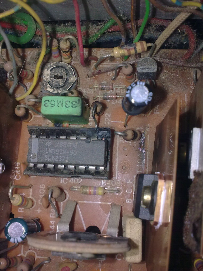 Egy ilyen készüléket vétek volt alapos takarítás és felújítás nélkül áram alá helyezni, de ezen már túl vagyunk. Az LM391-N adatlapi ajánlásától aligha tér el a végerősítő kapcsolási rajza.Itt találod. Ez alapján úgy nézem szépen rendbe lehet rakni. Remek kapcsolás, érdemes vele foglalkozni. Mielőtt elmélyülnél benne nézz utána az LM391 beszerezhetőségének, mert nem mai darab.
