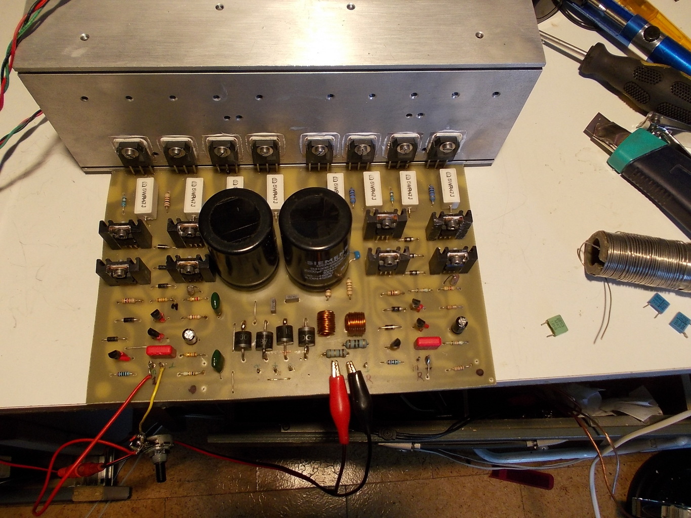 Ahogy elnézem a nyugalmi áram beállító potenciométer állagát, könnyen meglehet, hogy csúszka érintkezési hiba miatt szaladt el a nyugalmi és végzett pusztítást.
