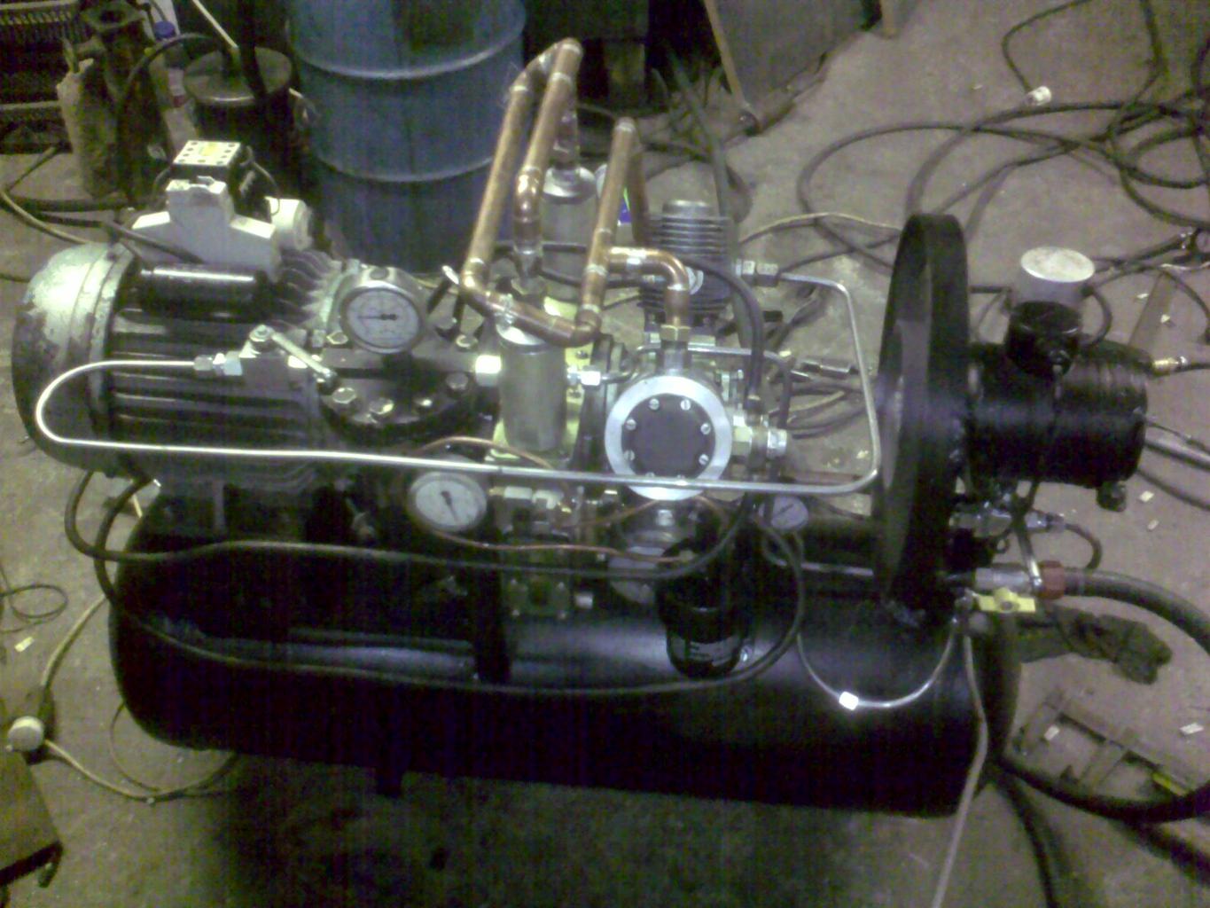 Fi relét nem nyomta le, terhelten is indította a kompresszort. Itt még nem volt bekötve véglegesen. A szörnyeteg készen így néz ki