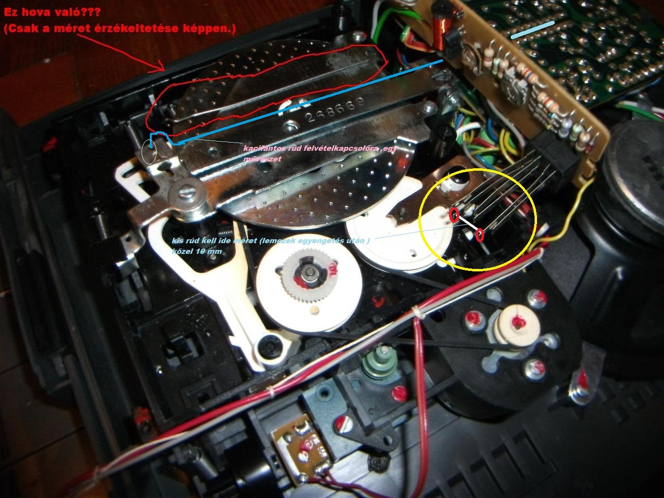 A kapcsoló lemezeit ki kell egyenesíteni "( lL )" képre írtam sacc méretett , a rudacska hasonlít s sodrófára (kb 10 mm ). A kis drót vagy a helyéről kifordított kapcsolót működteti vagy a felvétel kapcsolót . A kis rúd műanyag legyen középen 3 mm átmérő és kb 10mm, a kapcsoló lemez furatai határozzák meg a két végén levő átmérőt és legalább 2 mm hosszú . Talán most ennyi . Zolika60 írja " sajtolt lendkerék " EMEz készülék nem nyávogott mint a hasonló Kínai bóvli . Lendkerék súlya a stabil fordulat eredménye . Üdv.: |
