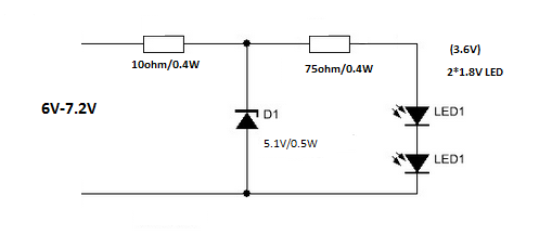 Azért nem akarok berakni nagyobb zennert(pl 5V6), és 3db LED-et, mert ha valamiért leesek az akksi fesz, akkor nehogy ne világítson a LED, mert az ebben az esetben nem jó. (féklámpa)