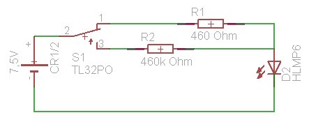 Szóval, csináltam egy áramkört mely egy 7,5V-os elemből, egy kapcsolóból egy 460 Ohmos és 460k Ohmos ellenállásból és egy led diodából áll. A kapcsoló egyik állásban a 460 Ohmos ellenállásos áramkört kapcsolja be, a másik állásban pedig a 460k-sat. (Mellékeltem az áramkör rajzát.) Azt nem értem, hogy miért van az hogy sötétben is alig látszik, ha kapcsolok a kapcsolón, azaz nem az történik, hogy a led látványosan elhalványodik vagy világítani kezd. Biztos nagyon bugyuta kérdés...de azért kérlek válaszoljatok. Köszönöm! |