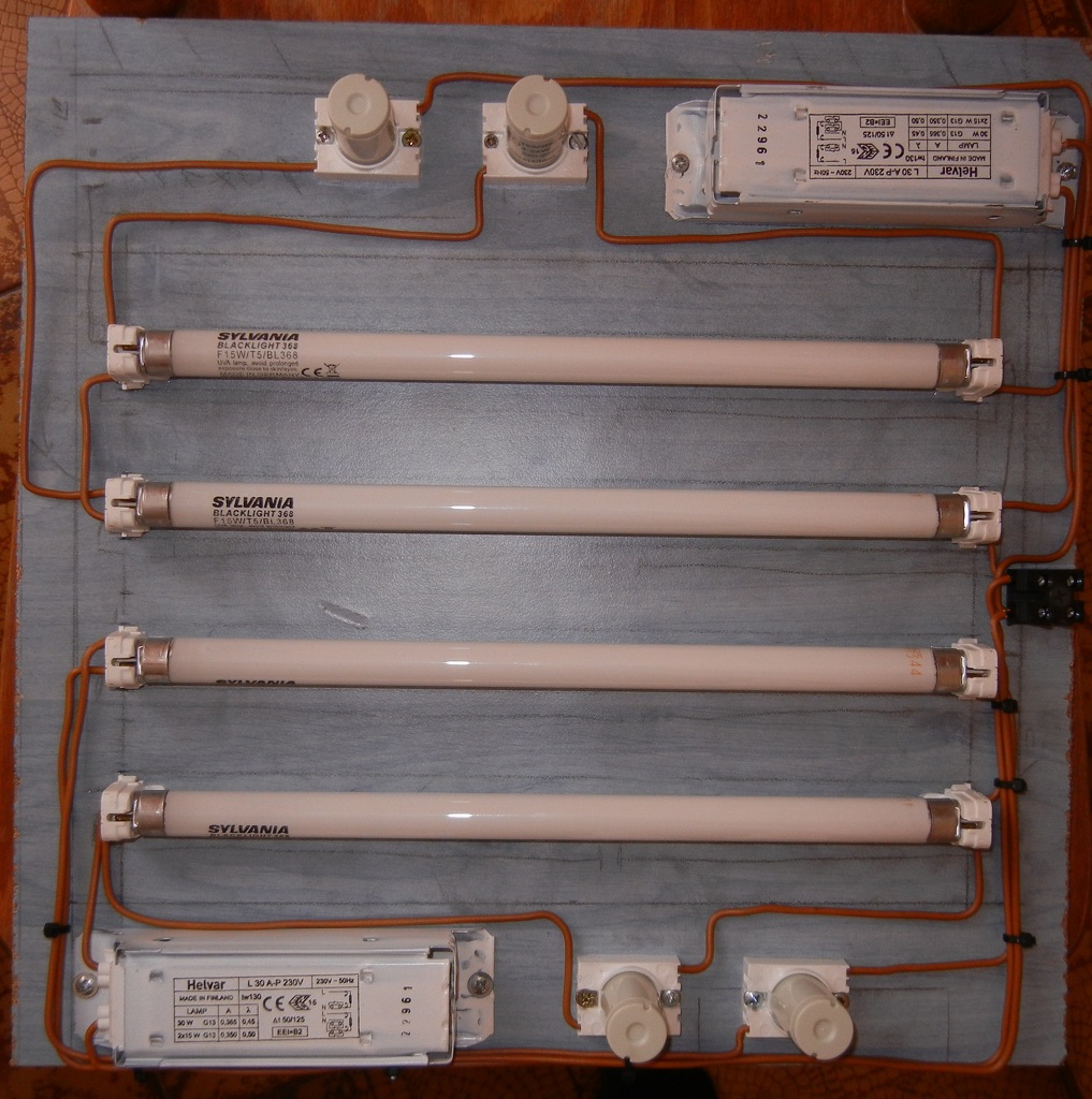 Azt csak a fotozas miatt tettem oda hogy kicsit jobban latszodjon, hogy mennyire homogen a vilagitas. Persze nem 100% tokeletes, de a panelokon eddig nem vettem eszre ilyen iranyu problemat. Ennek ellenere gondolkodtam egy olyan folian amit LCD kijelzokben lattam a feny elosztasara. Bar nem vagyok benne biztos, hogy szukseges. A postom ota ismet csinaltam egy 120x190mm-es levilagitast egy baratomnak. 0,3-as 0,5-os vonalak voltak rajta hegyekben. Hibatlan lett 1p30mp-es vilagitasi idovel. Nem elomelegitett csovekkel. Szoval a kello teljesitmeny megvan. Philips Actinic csovek vannak benne, father pont ma talalta meg oket nagyon jo arban egy magyarorszagi shopban. Hibatlanul dolgoznak nalam, csak en horror aron vettem oket itt nemetoszagban. Sorry az ekezetek hianya miatt de most nem a sajat gepemrol irtam es emiatt nem vettem fel a magyar kodlapot a listara...