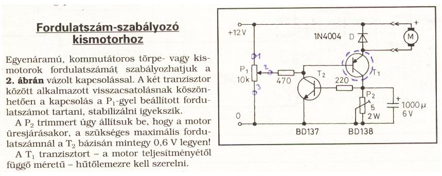 Na azért ez nem egészen igaz. Ugyanis ha a rajzot megnézed nem az a trimmerrel szabályzod a fordulatot hanem a P 1-el. Azzal csak munkapontot állitasz amit többlépésben ki lehet mérni 5 ohm-nál kissebb ellenállások felhasználásával, és amikor a mért érték megfelelő akkor egy olyan értékű ellenállást beteszel fikszen és a dolog működik.