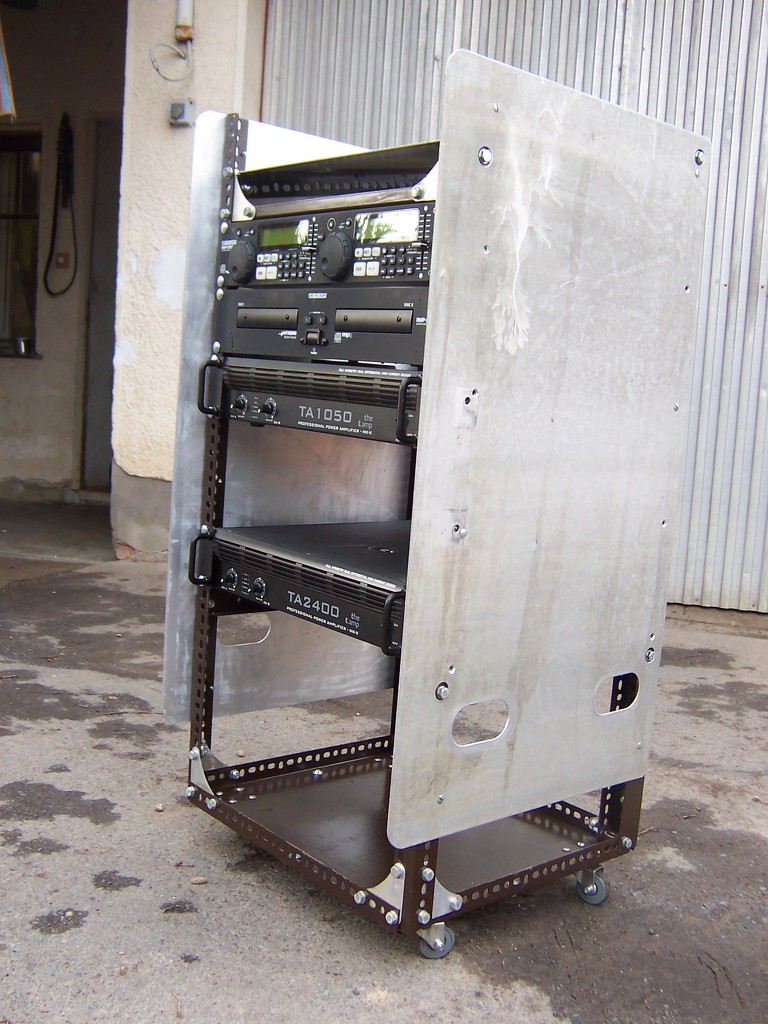 Elkészültem a saját tervezésű rack szekrényemmel. Salgó polc állvány az alap, itt a furatok megegyeznek az unit mérettel, tehát nem kell furkálni. Eleje, hátulja, egy-egy felülről be csúsztatható alu lemez lesz.