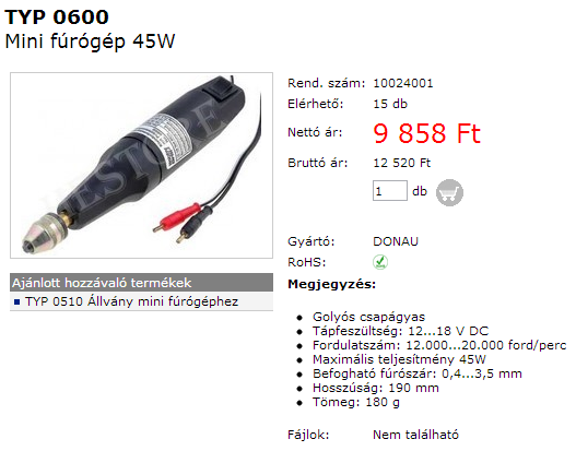 Van a keményfémből is és a sima 1mm-es száruból is.Csak valamilyen "adat" hiányzik hogy összerakhazzam a nyákfúrót,pontosabban milyen motor illene hozzá?