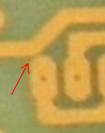 Nem akarok kukacoskodni, de ahol a vezetők fordulnak az IC lábaknál (45°-ban) néhol mintha hozzáérne az IC lábhoz.
