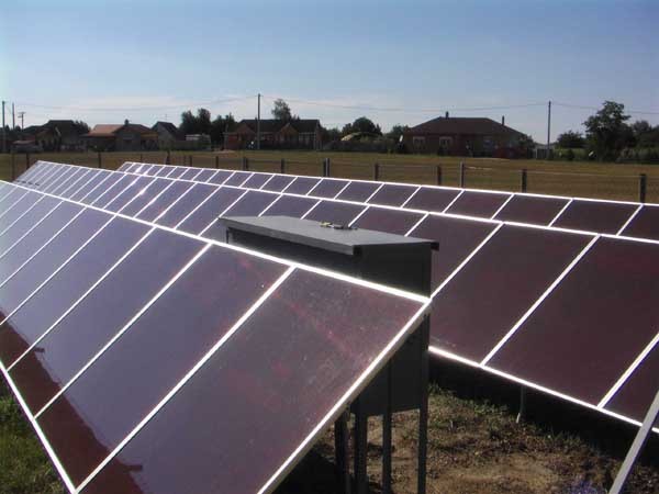 A napelem modulok ( 3x24db összesen 72db) 100W-os Mitsubishi amorf szilícium panelek. Az inverter blokk 3 x SMA3000 inverter + mindenféle túlfeszültség, villám és egyéb védelmek.