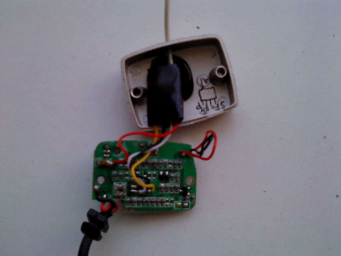 A kamerában két nyák található. A nagyobbikon van a képérzékelő IC, a mikrofon és a feszstab IC. A kisebbik nyákon pedig a rádióchip és az antenna. A két nyákot 4 vezeték köti össze. A piros és a fekete vezetéken kap tápot (5V-ot) a rádióchip. A sárga vezeték esetében én a képre, a fehér vezeték esetében a hangra gondolok.