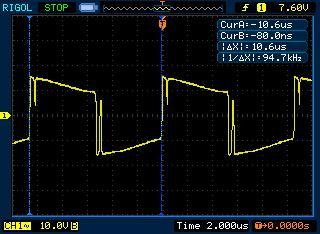 A Cimó féle rezonáns táppal kisérleteztem. Annak is a segéd tápjával. Kivettem a fete és a hozzá tartozó összes hókuszpókuszt. Betettem egy 47K 2W-os ellenállást a 320V-os pontra és elindult, de kevés volt neki az áram mert az csak 6mA-t tudott. Kisebb ellenállást meg nem akartam használni, mert akkor fűtene nagyon. Az ic követelte a 12.5mA-t és ciklikusan le állt mindig aztán újra indult.