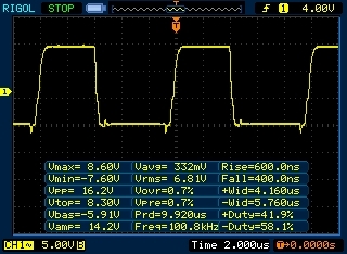 Ennek azért messze 100ns alá le kéne tudnia menni. Próbálj olyan állásban nézelődni, hogy a maximumot kifacsard a szkópból (ehhez tuti 2us-nál rövidebb időalapot kell választanod). Ha van rajta aluláteresztő szűrő (mondjuk 5-10-20MHz körül), akkor azt meg ki kéne kapcsolni.