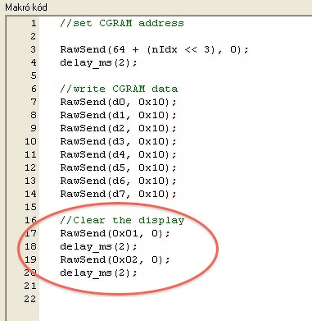 „LCD Dsiplay -> Egyedi kód -> RAM_Write