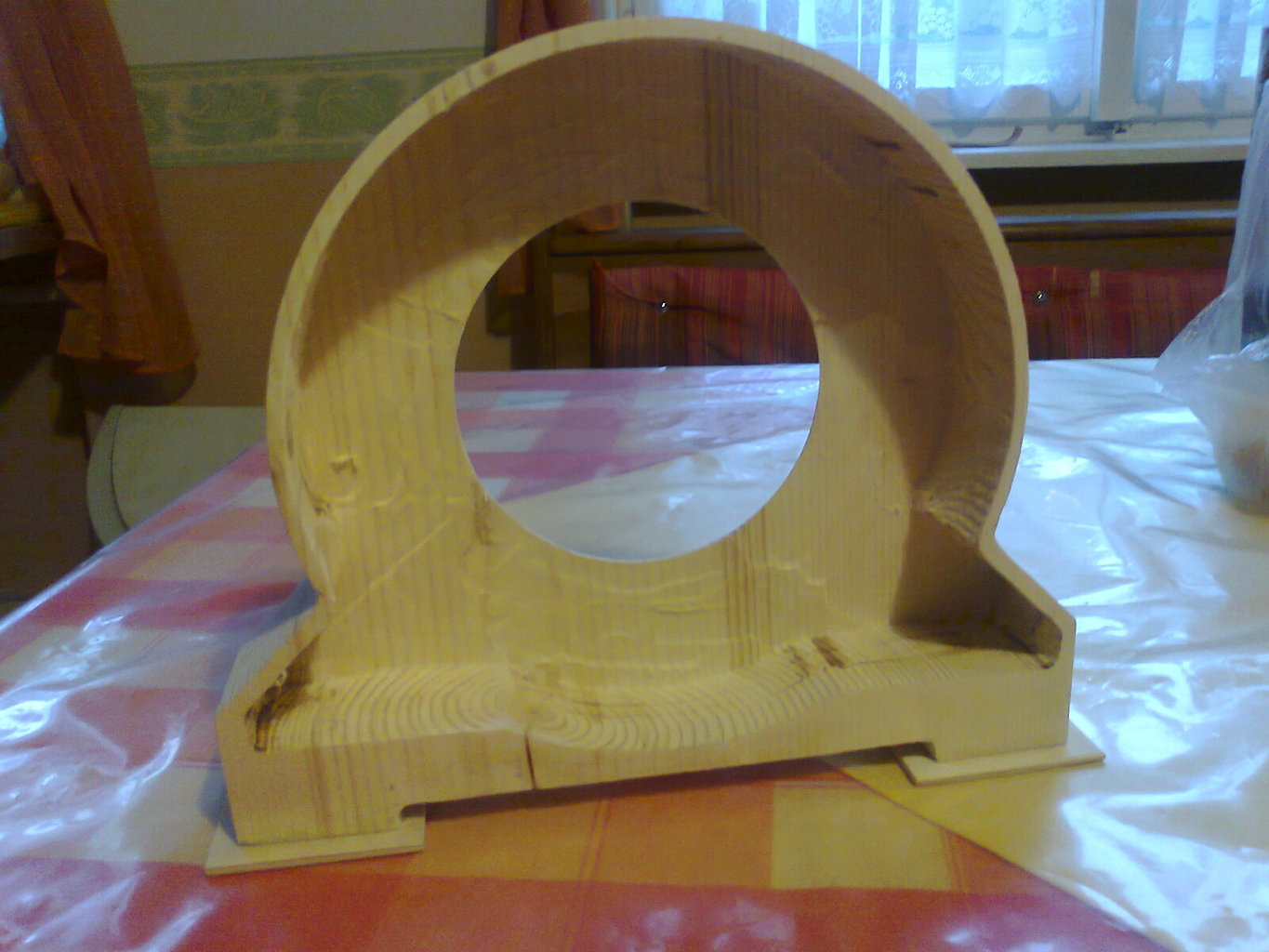 Szia, a passzítás nem volt bonyolult mert kört kellet vágni amit felsömaróval csináltam nem dekopir fűrésszel, azzal nem lehet ilyen kört vágni. Csináltam hozzá egy talpat amit körző szerűen tudok körbe forgatni, így tökéletes kör lesz amit ragasztóval bekenve belekalapáltam a végeibe, majd kerek fejjel körbe mentem rajta, kb 1 óra alatt kész volt festéssel együtt. A rücsi egy kaucsukbázisú festék amit utána matt feketével lefújtam. Itt egy kép a festékről bármelyik nagyobb festékboltban lehet venni. A hangolással nem babráltam sokat, tapasztalataimra hagyatkoztam 40-es cső 16cm hosszú.