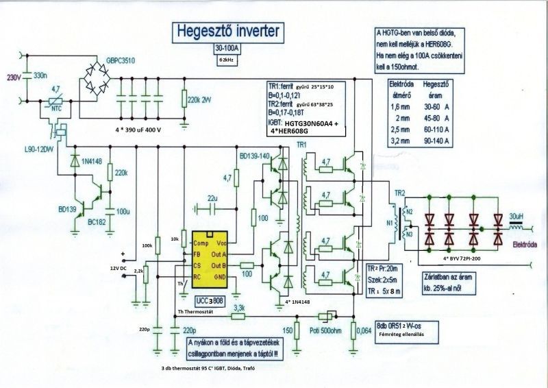 Raktam bele letapadás gátlót itteni maci rajz szerint csak relés megoldással Vref és a dtc közé 125 ohm zár , hőkapcsolót. Elméletem szerint 40-120 amper közt tudom szabályozni, az ív erőssége és az anyag vastagságából ítélve ,nincs mivel meg mérjem az áramot. K.b. 40 szál elektródát kísérleteztem el eddig semmi sem füstölt el (kivéve a fényképezőm szeme begymulatt ) szerintem tökéletesen üzemel.