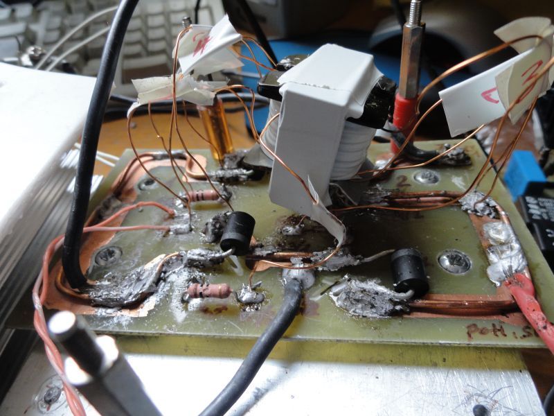 Többet is próbáltam, toroidot is. Mindegyiknél az volt a tapasztalat, hogy a szekunderek magasabb feszültségűek voltak mint a primer - pedig 5 db szigetelt vezeték volt összetekerve. A mostani egy E-I magon van 5 sorban külön szigetelve.