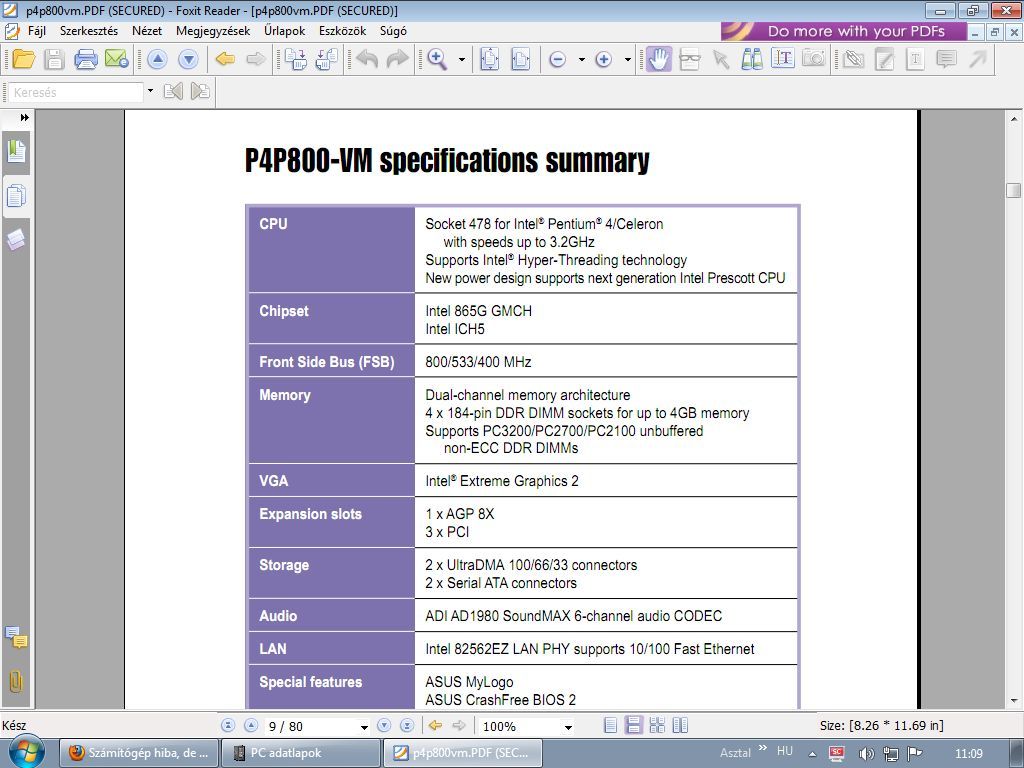 A weben fellelhető doksi szerint Intel 845G chipset van benne. Az 400 és 533MHz-es procikat tud kezelni, 800-asokat nem.