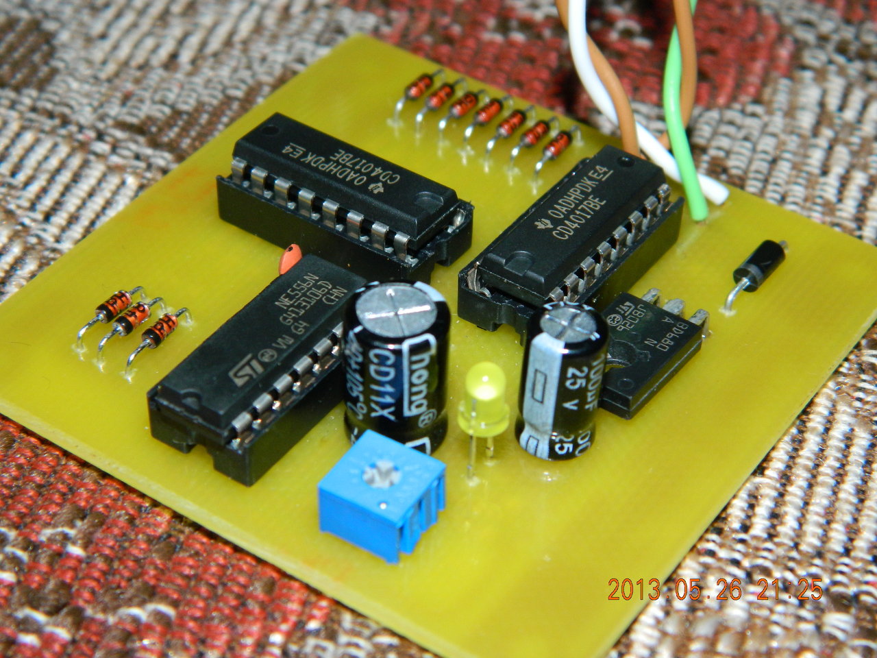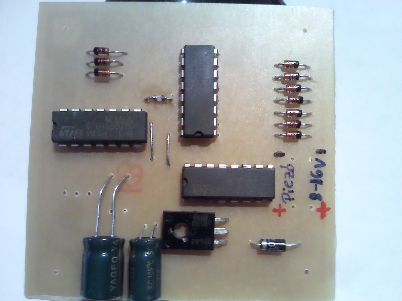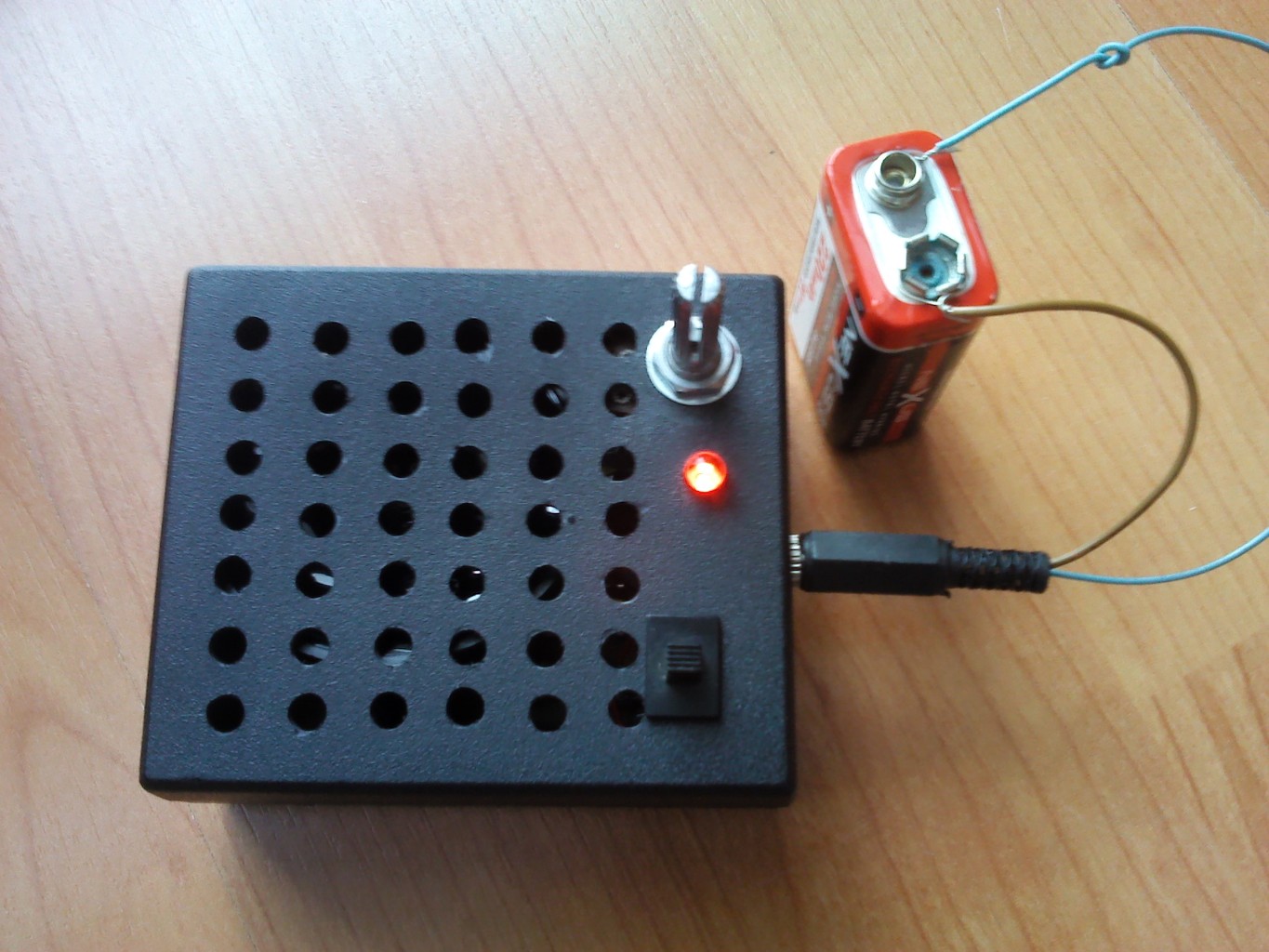 Hali! Na idáig jutottam. Még csak most raktam össze teljesen,így még nem teszteltem.Próbáltam egy 12V os adapterről de ott csak búg.Aztán amint képen is látszik egy 9V-os aksiról. Van egy pattogás amit követ egy emelkedő-csökkenő csipogás aztán megint egy pattogás(mint amikor az elemet rákötöd a hangszóróra). Majd este átnézem és lemérem az ellenállásokat mert minden ellenállást beforrasztatás után lemértem és volt amelyiknek nem volt valós adata. A másik ketyerémen nem lehet hallani ezt a pattogást.Na majd még este kiderül hogy mi a bibi.Egyébként most itt sincsenek még szúnyogok,este 10°C volt.