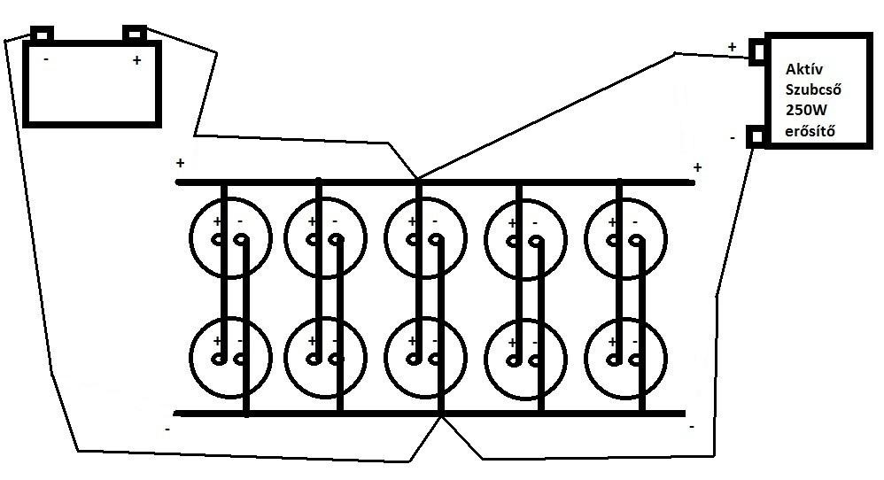 A SAL XB-10/A egy aktív mélyláda, szóval van benne erősítő is. Részemről messziről elkerülöm a kínai ipar eme remekeit, de ha van kedved vele kínlódni, nem akadályozlak meg benne. Az SR 2530-es kihagynám a kocsiból, 8Ω-ot szobai hifinél használnak.Visszatérve a hangszórókra: a 4 kivezetés az két hangszórótekercs, amit beköthetsz sorosan, párhuzamosan, vagy egy sztereo végfok két csatornájára, feltéve, hogy ugyanolyan fázisban és ugyanolyan jellel hajtod (vagy van az erősítőn mono mód). A dupla tekercses hangszóró impedanciája valószínűleg 2x2Ω-os, ezért a tekercseit kösd sorba, és azt kösd hídban az erősítőre, így 4-ohmosként tudod használni, az erősítő sem lesz nagyon leterhelve. Az erősítő bemeneti jelszint (gain/level) potiját gyakran összekeverik a hangerőszabályzóval, sosem szabad teljesen feltekerni. Erősítő level legkisebbre, fejegységen hangerő felteker 3/4-ig, majd az erősítő jelszintet torzításig növelni, kicsit visszavenni. A neten talált képeket elnézve, nem egy erőgép, szóval ha túlvezérled megsütöd, csodát ne várj tőle, a 15A-es biztosíték alapján jó ha 2x40W-ot tud.