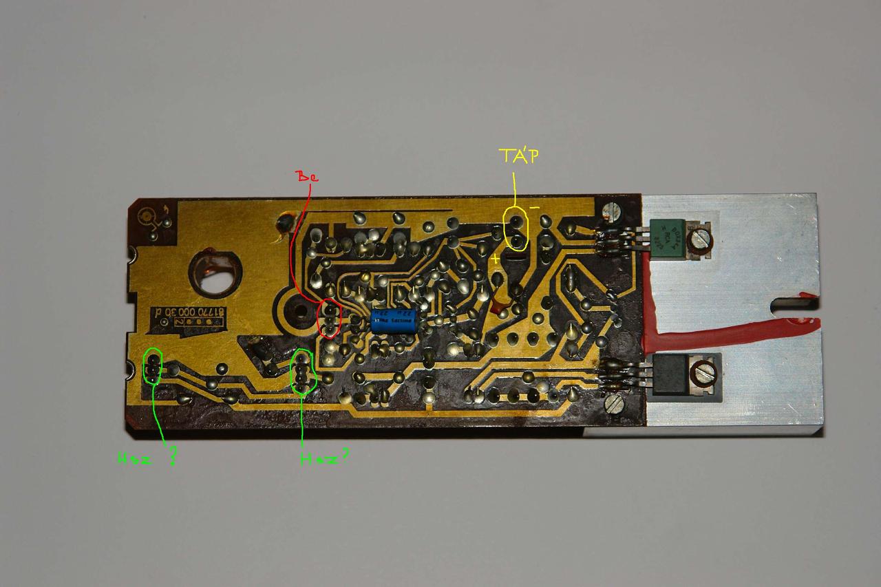 Kaptam egy sztereo TV-ből kioperált és kidobásra ítélt 2db mono végfokot. Szeretném kipróbálni (azt monja a régi gazdája, hogy hibátlan), de a bekötésével vagyok bajban A tápfesz csatlakozást sikerült beazonosítanom, és talán a bemenetet is (ezt jelöltem a képen is). A hangszórókimenet homályos leginkább számomra. Gyanítom, hogy a magas és mély hangsugárzók passzív tagjai is rá lettek építve a nyákra (ezt a részt megpróbálom visszarajzolni) Legideálisabb számomra egy kapcsolási rajz lenne, de csak annyit tudok róla, hogy talán Grundig tévében volt. Így nehéz. Ennek megfejtésében tudnátok nekem segíteni? Ha valakinek már volt dolga ilyen csodával kérem segítsen. Köszönettel: metabo123