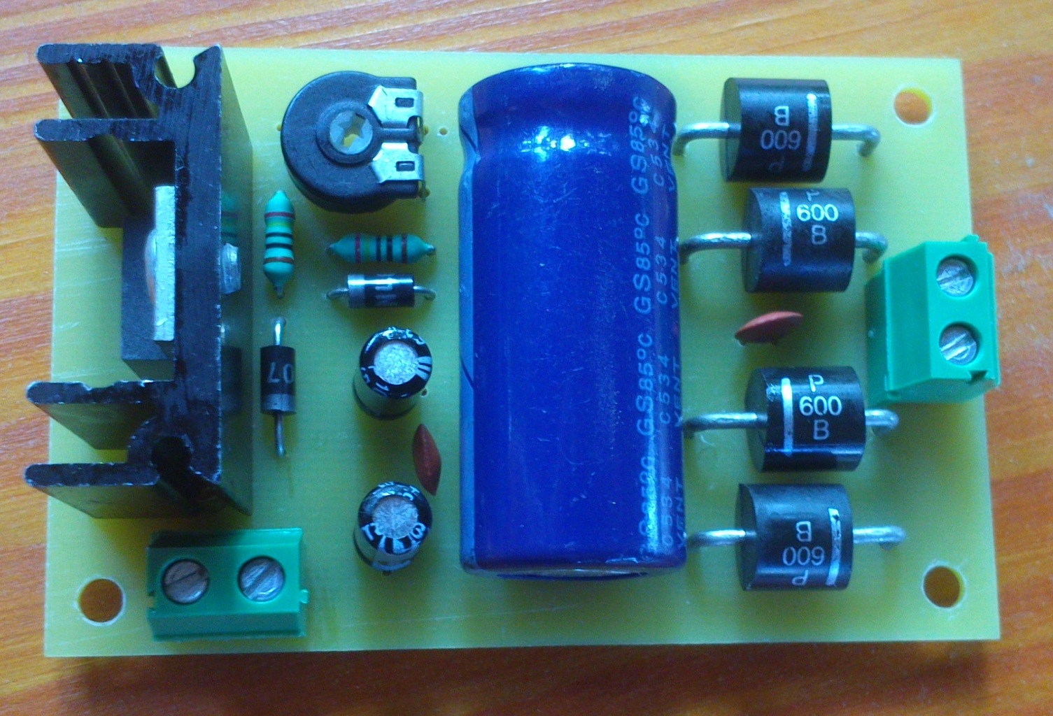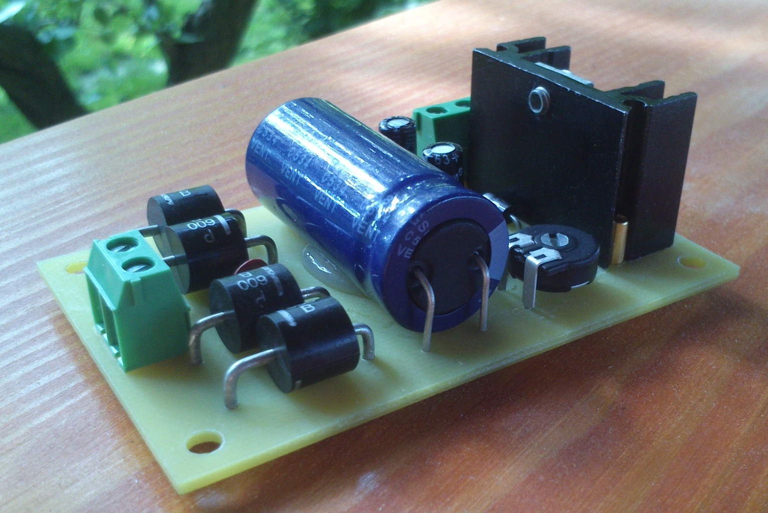 Én is alkottam, bár ez nem túl bonyolult, de legalább saját termés. 1,5A tápegység TS317-tel. Valamilyen AC-t igényel a felhasználás függvényében (max. 26-27V) minden egyéb a nyákon van. Én 20VAC-vel próbáltam, 2,5 - 24,5V között tudtam beállítani a kimenetet. Még néhány kép a tápról.