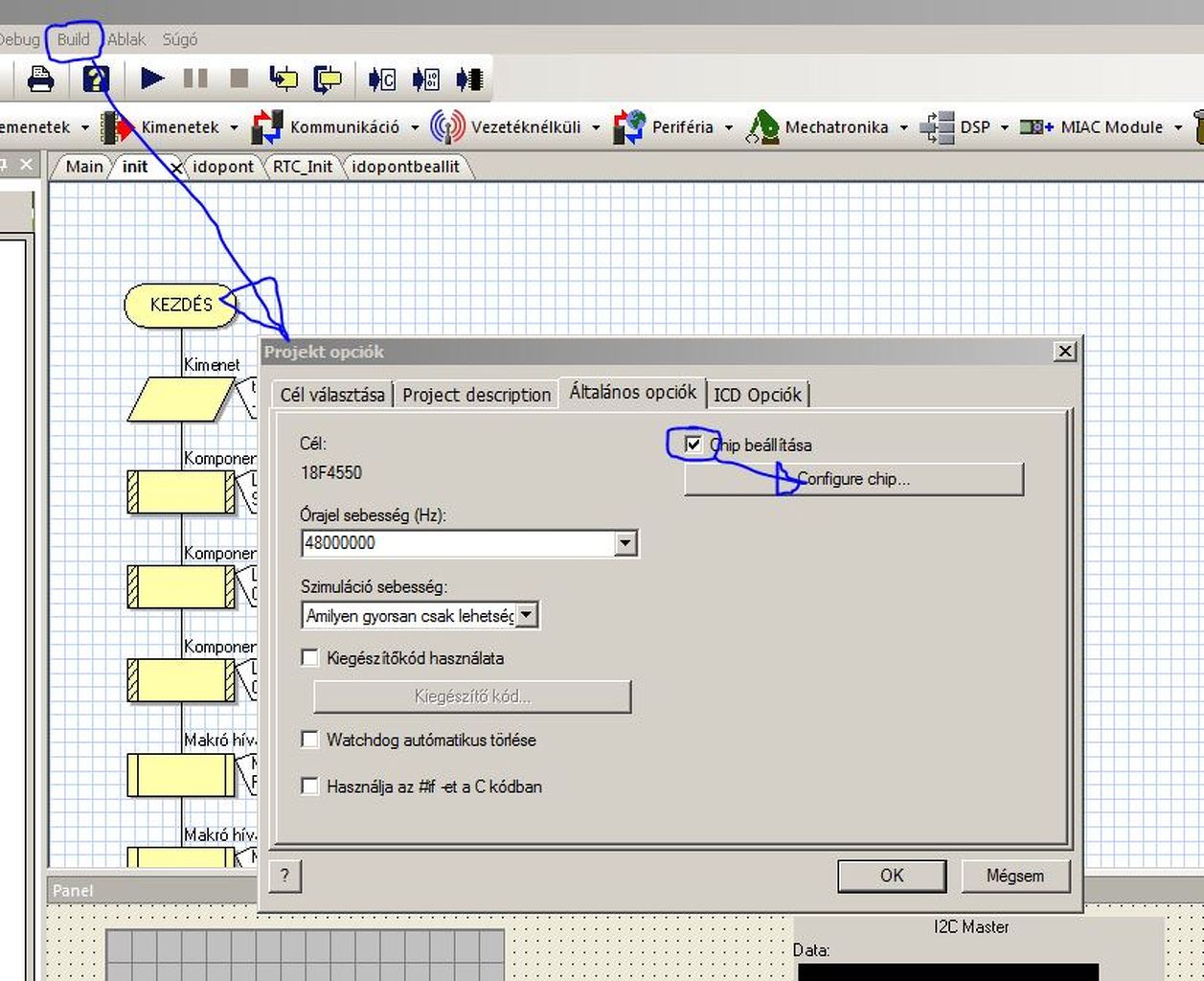 Watchdog: Ez akkor lehet hasznos, ha lefagyhat a program, de erre nagy valószínűséggel nem lesz szükséged (Disable). Power Up Timer: Kicsit hosszú elmagyarázni, adatlapon és neten minden megtalálható (Enable) Master Clear: Használod-e a külső Reset-et vagy sem. Ha nem, akkor Internal, Port on .. Code Protect: Ha bekapcsolod, nem lehet kiolvasni a PIC-ből a programot, olvasási védelem lesz rajta, nem tudják lemásolni. EE Read Protect: Hasonló, mint az előző, de ez az EEPROM területre vonatkozik. Brow Out Detect: Tápfeszültség csökkenéskor Reset állapotba tudja taszítani a PIC-et. Internal-external: Külső órajelhiba esetén (kimarad) átkapcsol abelsőre, már ha engedélyezed.