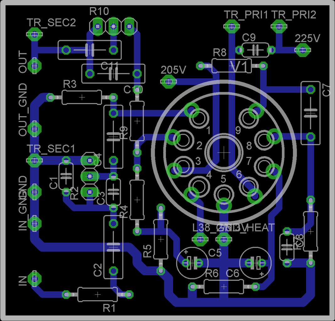 Hello! Én a C9 méretét kicsinek találom.. Az erősítőnél, a GND pontokat nem vinném olyan közel az anódlábhoz. Ugyan így a tápegység résznél, a GND kitöltést feleslegesnek találom. Minek kihívni a sorsot magunk ellen. A 250V egyen, minden piszkot magához fog vonzani, és idővel átüt. Inkább a kondihoz menő plusz vezetékeket vastagítsd meg. üdv!