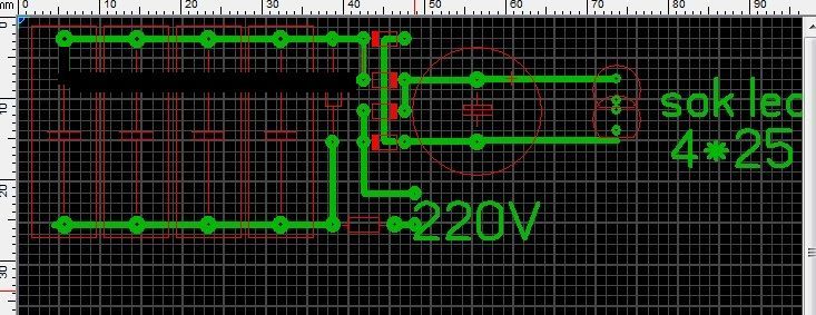 Az 1W-os ellenállás és a diódák nagyobbak mint amekkora helyet hagytál nekik. A 220-as felirat hozzáér a bemenethez és a távolsága is nagyon kicsi a 220-tól.