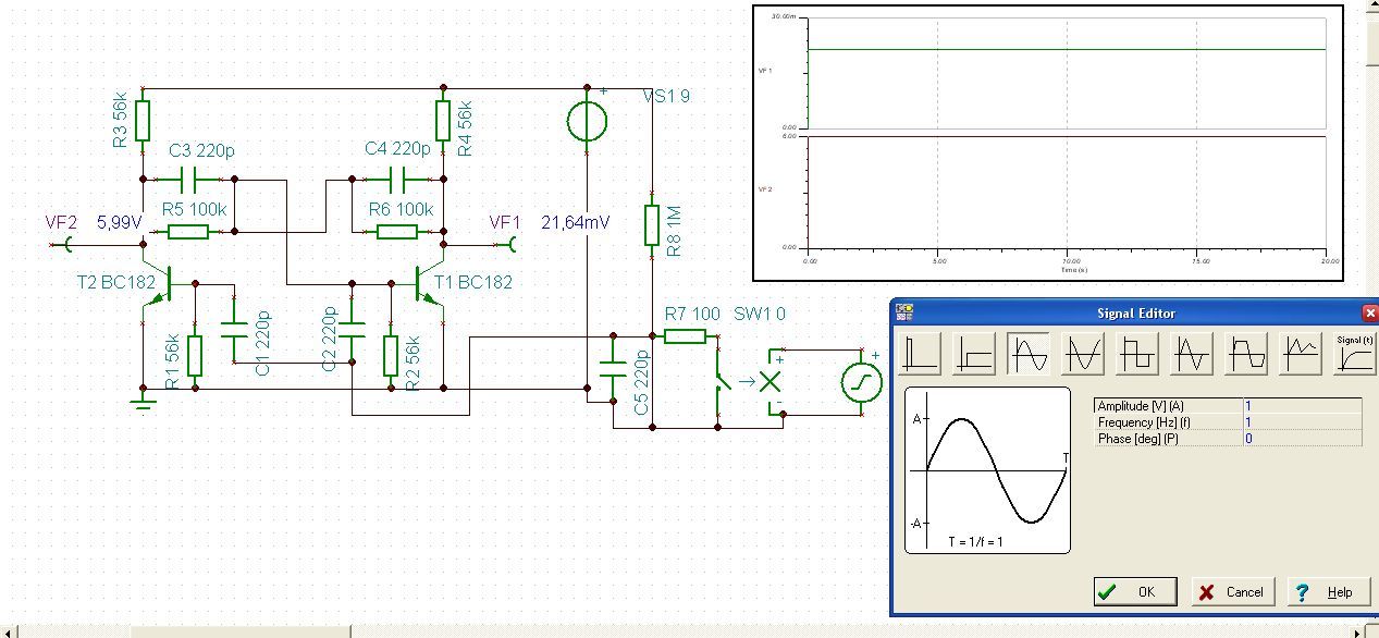 Valaki el tudná nekem magyarázni, hogy a Tina nevezetű szimulátorban a multivibrátor miért így viselkedik? *kép* Mit tudok vele csinálni, hogy a valós állapotokat mutassa nekem szépen, ahogy kell. Ez egy több millió példányban legyártott kapcsoló áramkör, valóságban működik, tinában ezt produkálja. A hozzászólás módosítva: Jún 9, 2013