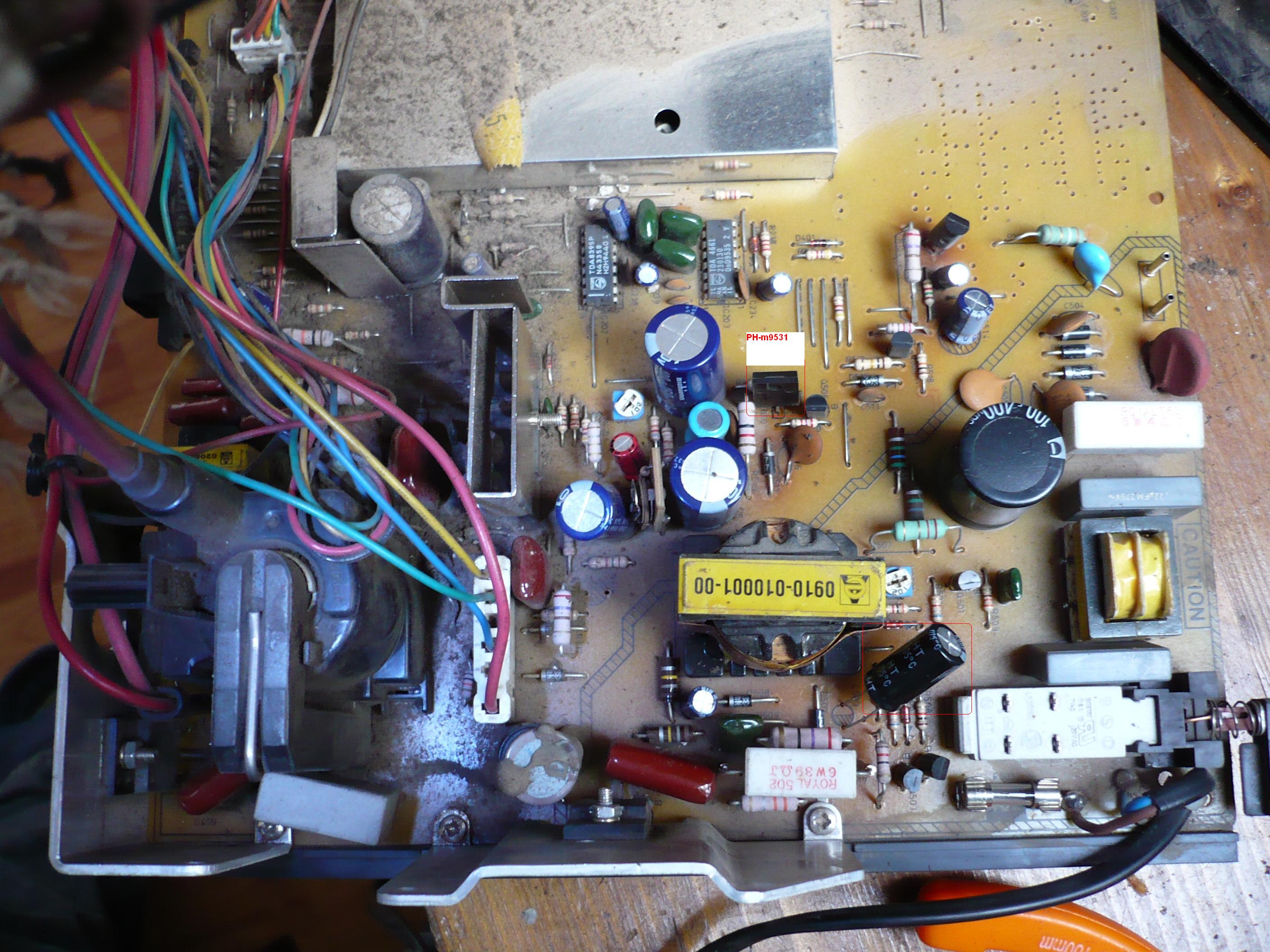 Thomas TVrol lenne szo. Kattogott a tap, kicserelmtem egy 10µF/50V (rajzon bejelolt) kondenzatort 10µF/100V -ra (ez volt itthon) es elindult. Mukodik. Csakhogy: -Sisztergessel indul (Valamelyik trafo) ilyenkor picit szethuzza a kepet es remeg a kep. -Aztan beall 'normalis mukodesre' -egy ido utan neha eltunik a kep , aztan ujra mukodik. -Tapot beallitva 115V-ra nehany perc mulva visszaesik 100V korulire. -A rajzon bejelolt (PHm9531) alkatresz annyira melegszik hogy azt hiszem a forrasztasok is megolvadtak a labainal. Segitsegeteket elore is koszi.