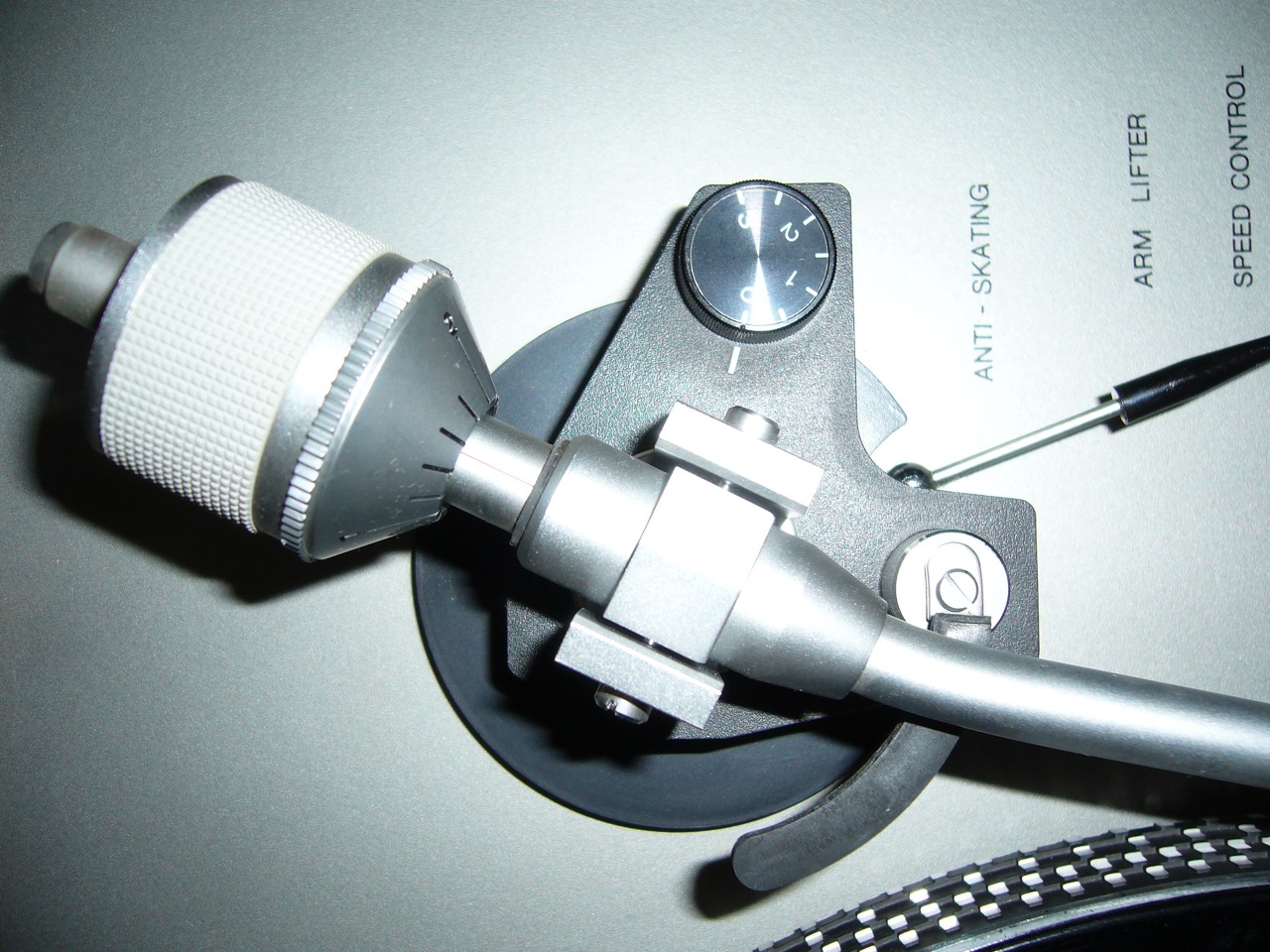 A skating erőnek a tűnyomáshoz nincs sok köze. Az interneten található "másik" beállítási mód: a lemeztányérra tegyünk üveglapot, vagy engedjük le a tűvédőt és addig állítsuk az antiskatingot, amíg nem húz semerre a kar, szintén helytelen. Valaha én is próbálkoztam ezzel, de másik fórumról, valóban hozzáértők meggyőztek, hogy így nem jó. Csak mérőlemezzel állítható be helyesen. Kipróbáltam. Nekik volt igazuk!