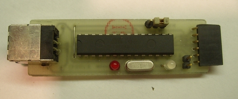 MCP2200 működését. Ugyanis az Rx és Tx vezetékeket köti össze. Egy másik elképzelés a bitbang mód volt, hogy külső égető nélkül, egy speciális programmal az MCP2200 portjain keresztül vigyem fel a firmware-t az ATMega8-ra. Ez biztos nem lesz, de a jumpert benthagytam.