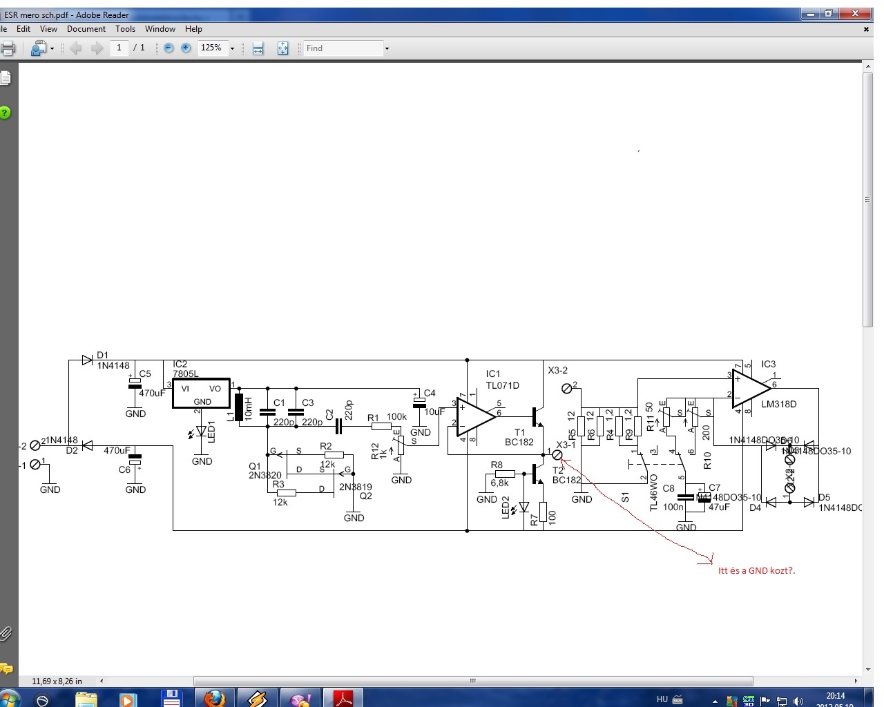 Én is most leszek kész egy ESR mérővel.Még egy 100 ohm-os trimmert kell vadásznom valahol.Én egy M830-as műszer dobozába rakom. LM324-el van készítve.