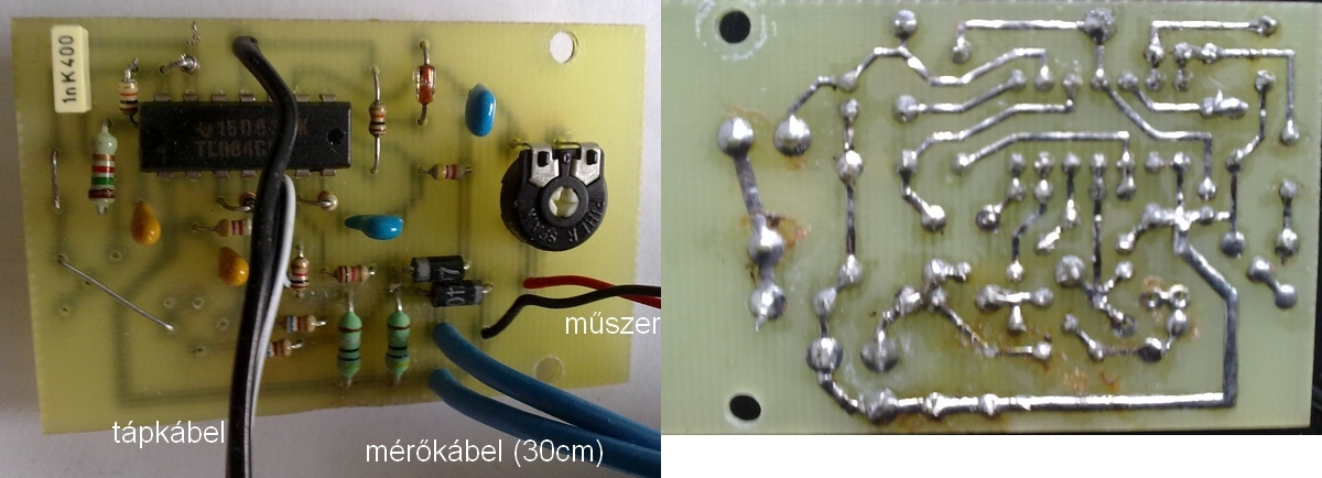 nagyon melegszik. De a másik állásban már kevésbé melegszik. Milyen értékűekre kell változtassam a trimmer potikat ahhoz hogy az én kis műszeremhez illeszkedjen a kapcsolás, ebben kérek egy kis segítséget. Teszek fel képet a kis műszeremről, és az oszcillátorról működés közben, a mérés a mérő csúcsoknál történt!. Van még egy dolog ami nagyon idegesítő!, miért halványul el az a LED ami a 7805-os stabilizátor icé 2-es lábán van ha össze érintem a mérő csúcsokat, mikor meg mérem a +-11V-os tápegységet az is össze omlik, és drasztikusan le csökken!. A hozzászólás módosítva: Jún 19, 2013