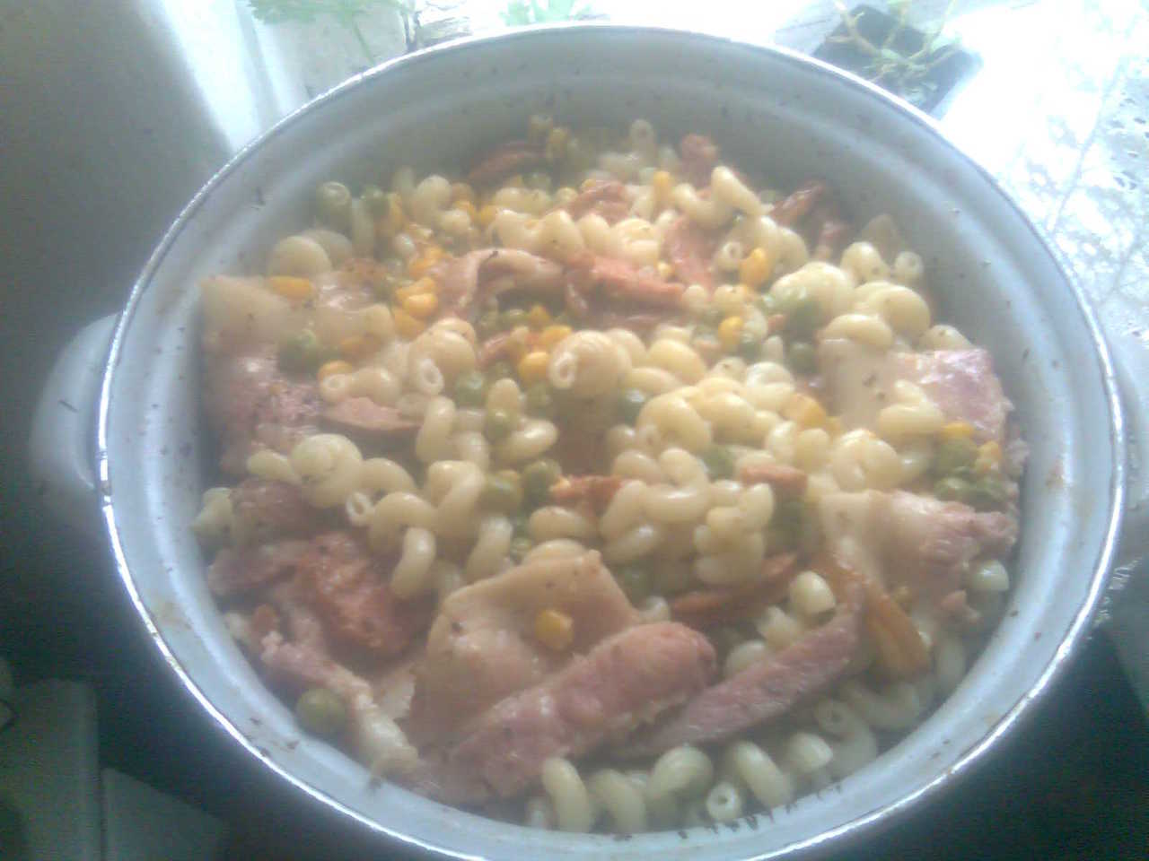 Hozzávalók: borsó, konzerv kukorica, császár szalonna, főzőkolbász, olaj, tej és majonéz. Az olajba kicsit megsütjük a kolbászt, majd hozzáadjuk a borsót és a kukoricát. Aztán belekeverjük a majonézes tejet. Amikor már megrottyant akkor beletesszük a császár szalonnát. Az alkotóelemeket bárki szabadon módosíthatja, ez csak "prototípus". A hozzászólás módosítva: Júl 27, 2014