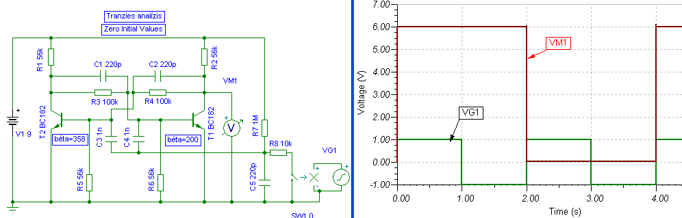 Valaki el tudná nekem magyarázni, hogy a Tina nevezetű szimulátorban a multivibrátor miért így viselkedik?