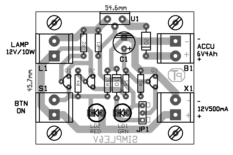 Az áramkör működési leírása kissé komplikáltabb mint összeállítása. Szerintem ez a módszer egyszerű, kevés és olcsó alkatrészt igénylő, de még is komfortos megoldást nyújt zselés aksi töltésére. Emelt táp és izzó feszültséggel, és 7812 alkalmazásával, 12V-os aksi töltésére is alkalmas lehet. Én megrajzoltam, Ti pedig elkészítitek, ha érdemesnek találjátok rá. Ezért nyáktervet is készítettem hozzá. üdv!